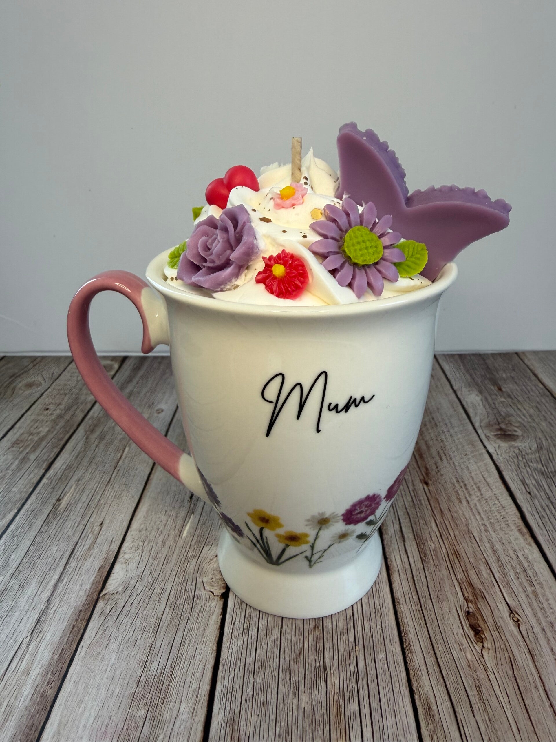 Diese liebevoll gestaltete Duftkerze in einer stilvollen Tasse mit der Aufschrift „Mum“ ist eine ganz besondere Aufmerksamkeit zum Muttertag.